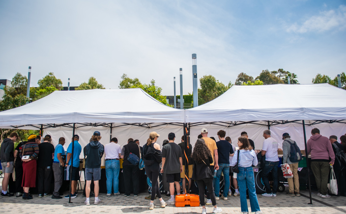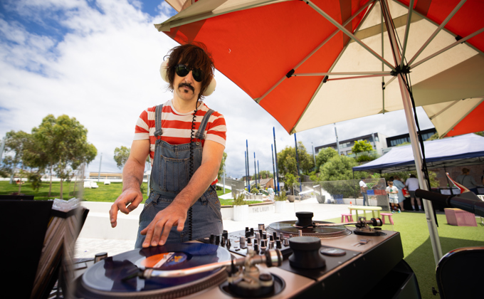 Relax in the Square with your friends and family while enjoying DJs spinning vinyl all day from Australia's only Vintage Vespa DJ Booth, 'Moto Bella'.